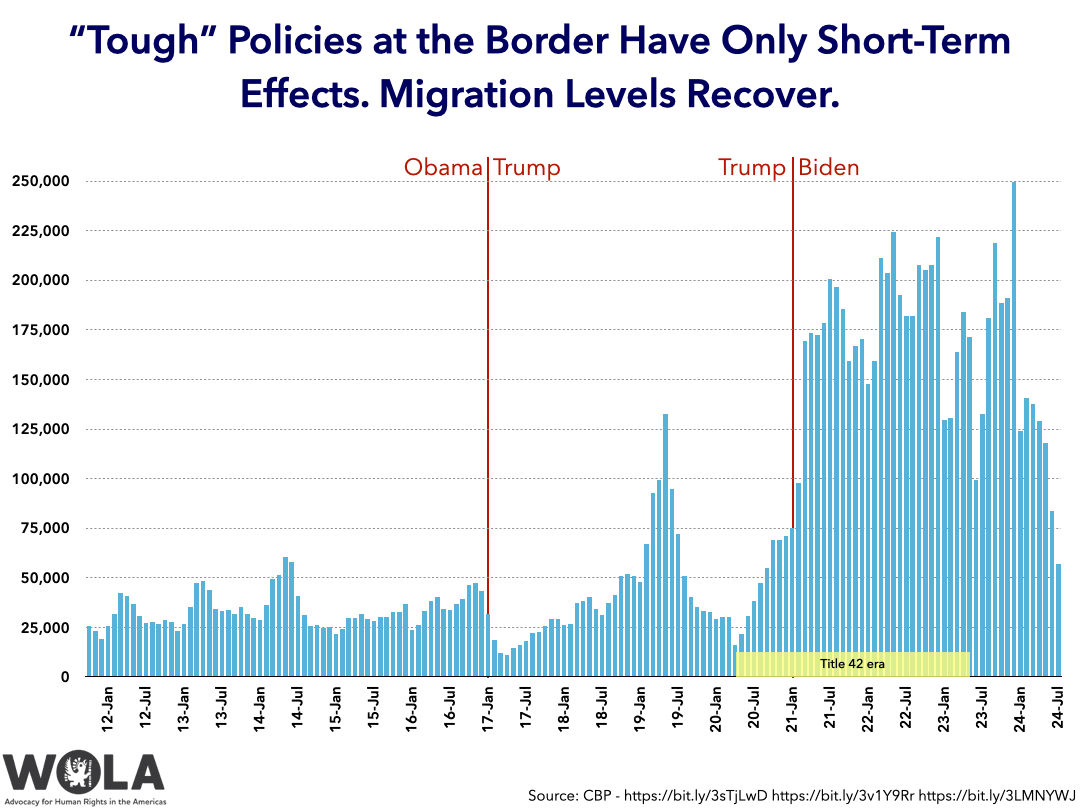 Experience with border and migration crackdowns over the past 10 years shows that cracking down has only short-term effects, with drops in migration usually bottoming out after a few months then increasing as migrants and smugglers adjust.