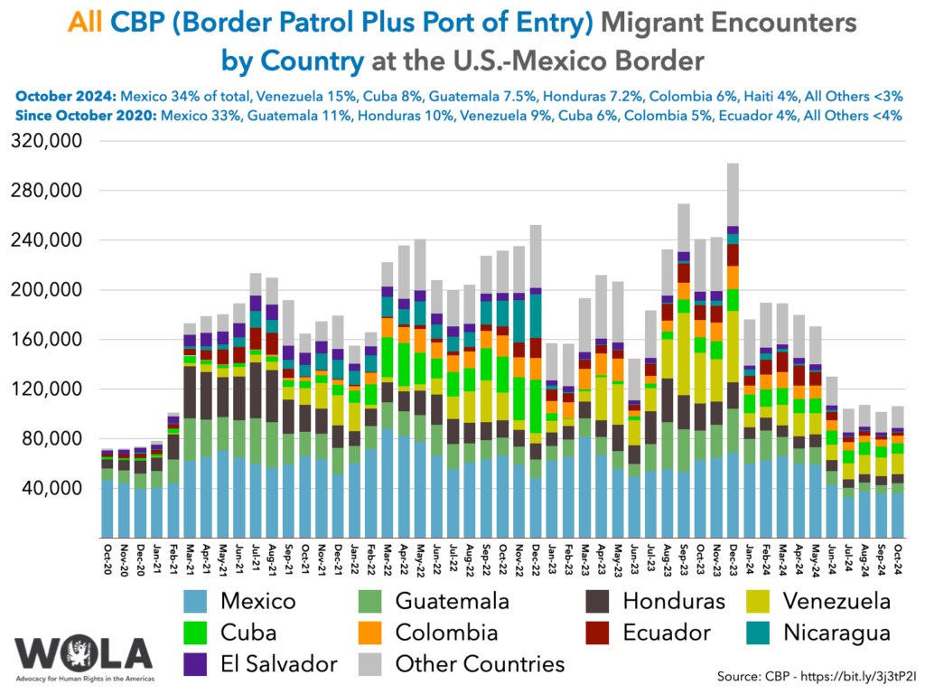 Two and a half weeks after Election Day, President-Elect Donald Trump has nominated a White House “border czar” (Thomas Homan), a White House deputy chief of staff with border and immigration policy responsibilities (Stephen Miller), and a Homeland Security secretary (Kristi Noem). All are known for hardline views on the border and migration (as discussed in WOLA’s November 15, 2024 Border Update).