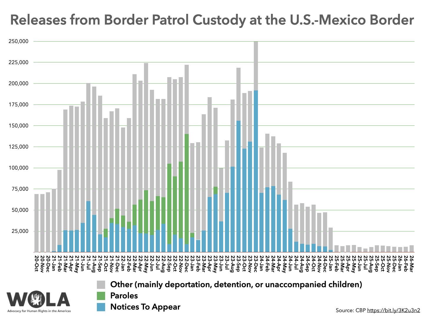 The reasons for the continued drop include the impossibility of accessing asylum at the border, as the Trump administration’s January 2025 proclamation suspending asylum remains in effect while legal challenges continue. This, together with a climate of fear in the U.S. interior amid the administration’s “mass deportation” campaign, has suppressed new arrivals.