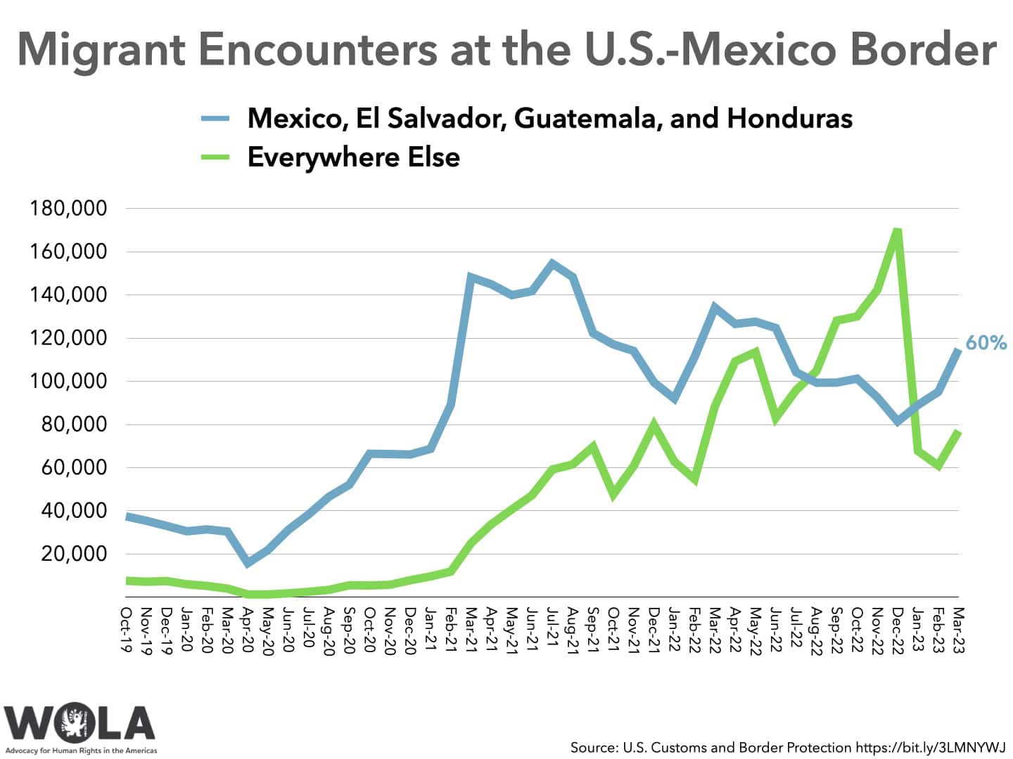 Until 2020 (when it dropped to 89 percent), over 90 percent of migrants apprehended at the U.S.-Mexico border were always from Mexico and northern Central America (El Salvador, Guatemala, and Honduras). By 2022, however, that share had dropped to 57 percent.